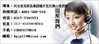地址:河北省吳橋縣桑園鎮(zhèn)開(kāi)發(fā)區(qū)燕山道西側(cè) 熱線電話:4001-588-518 郵編:061800 電話:0317-8323988 傳真:0317-8323991